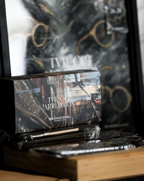 홍승원과 TVR® OPT의 협업은 2016년으로 거슬러 올라갑니다. 브랜드의 전 컬렉션을 일러스트레이션으로 재해석하며 첫 인연이 시작되었고, 2021년에는 TVR® Classic JD Blackwood 스페셜 에디션의 아트워크를 담당했습니다.그리고 2025년, Woody Carved 시리즈의 10주년을 맞아 그는 다시 한 번 브랜드의 대표 아이덴티티를 시각적으로 형상화했습니다. 이번 작품은 단순히 ‘복각’을 넘어, 지난 10년간의 기술력과 철학, 그리고 향후의 미학적 확장을 기념하는 상징적인 비주얼로 자리합니다.